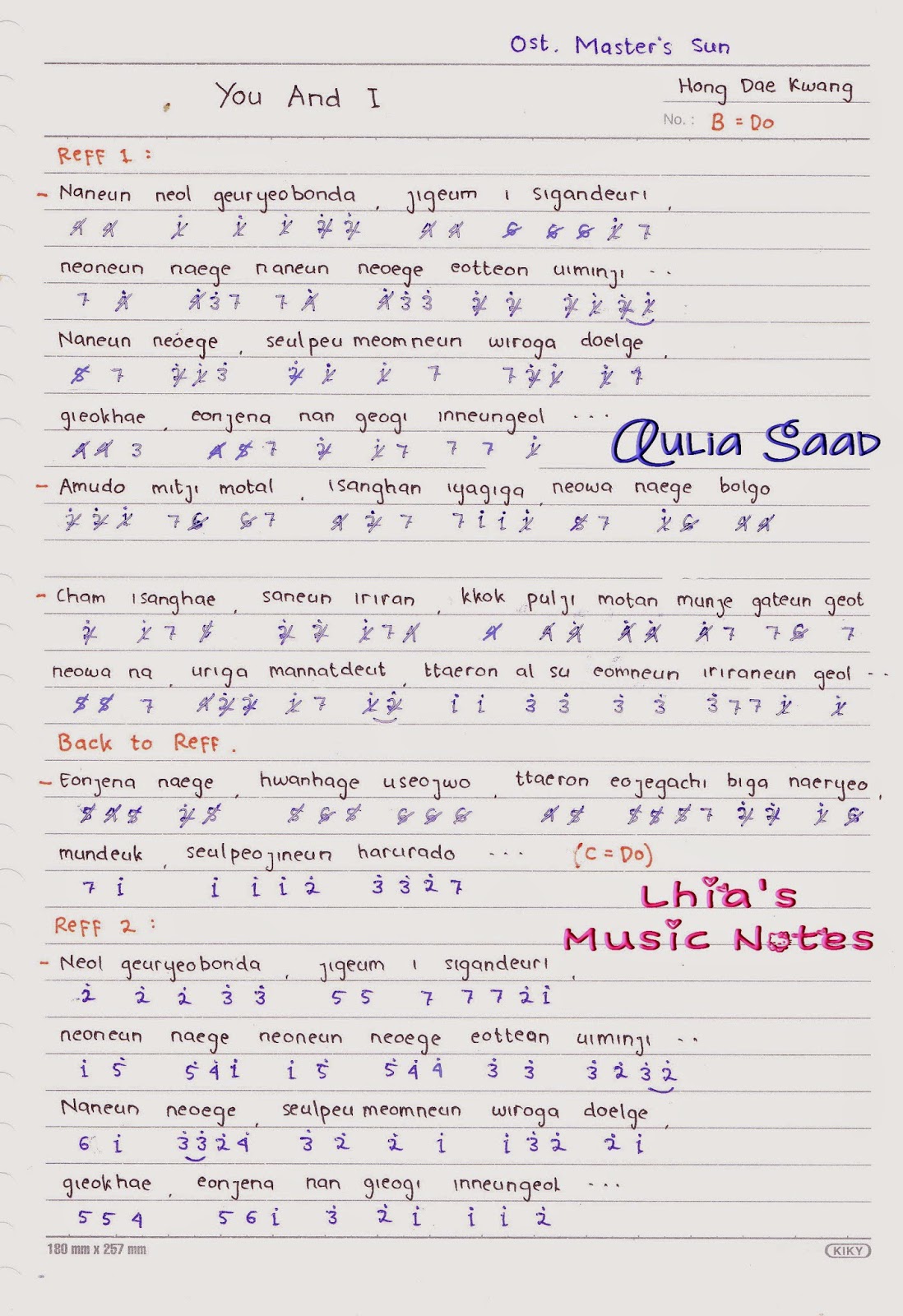 Not Angka Hong Dae Kwong You And I Ost Master s Sun Not Angka